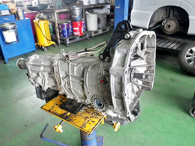 スバル インプレッサにお乗りのお客様から走行中に異音がするとの事でご入庫頂きました。こちらの車両、現在ではちょっと珍しいマニュアル車となっております。早速点検してみたところ、ミッション内部のデフからコンコンと何かがぶつかっているような異音が確認できましたので修理が必要な状況です。