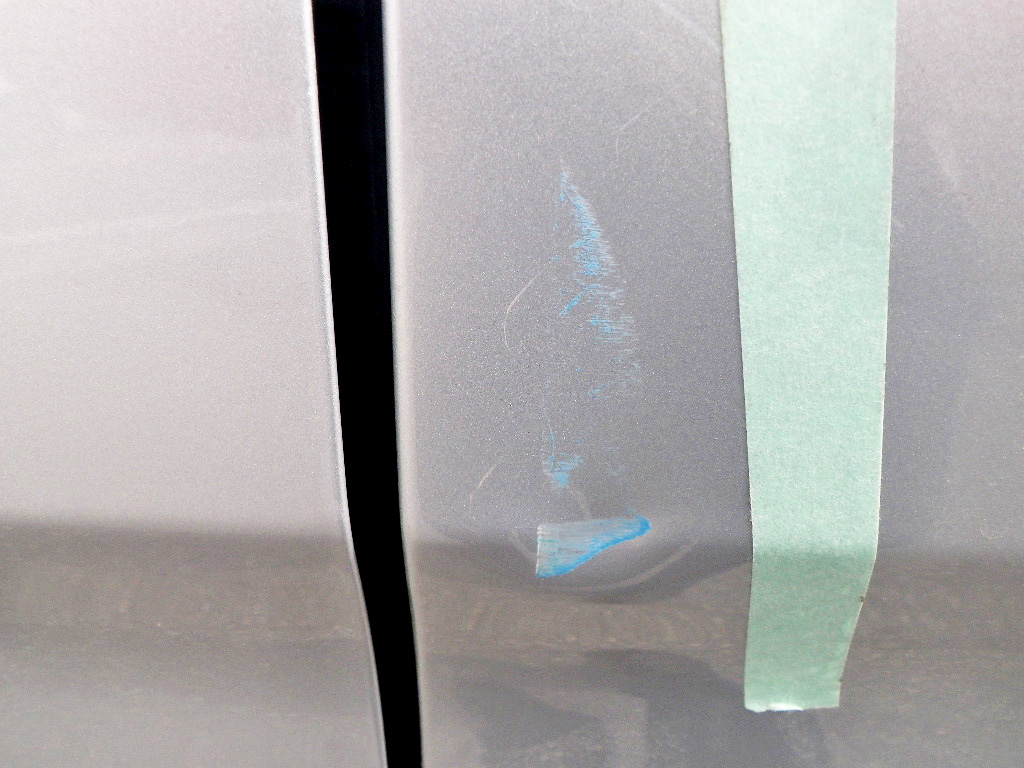 見た目はそこまで大した事ない傷にみえますが、綺麗に直すととなると、結構費用もかかってきてしまいます。幸いぶつけてしまった方の保険で直せる事になりましたので、元の綺麗な車両に戻していきます。