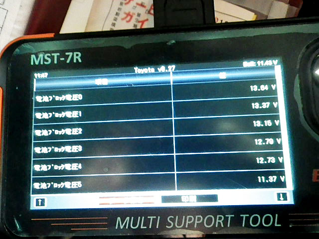 今回のお客様もそんなアクアにお乗りの方なんですが、チェックランプが点灯した事でご入庫頂きました。テスターにかけてみたところ『P0A80」電池内部異常』と表示されますので、明らかにバッテリーの不良が分かります。いくつかに分かれたブロックのうち、一つのブロックだけ電圧が異常に低くなってしまっているのが原因ですが、一つでもダメになった場合、全体が機能してくれませんし、更に今後同様の症状が外のブロックにも起こることが予想されますので交換が必要となります。