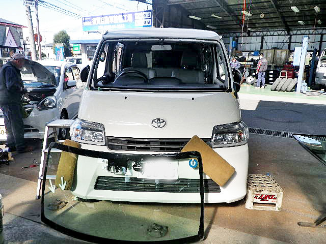 トヨタ タウンエース 飛び石でフロントガラスにヒビが⇒補修