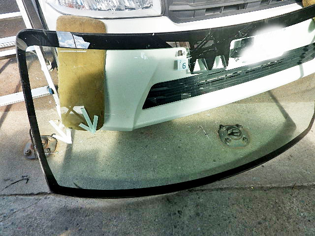 トヨタ タウンエースにお乗りのお客様が、高速を走行中に前の車両からの飛び石がフロントガラスに衝突してヒビが入ってしまったので補修して欲しいとの事でご入庫頂きました。写真でも分かるように大分ヒビがいってしまっています。ここまでいってると交換が必要になってきます。
