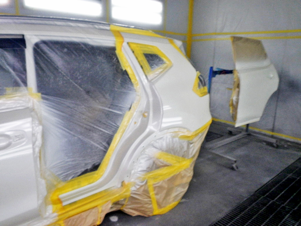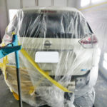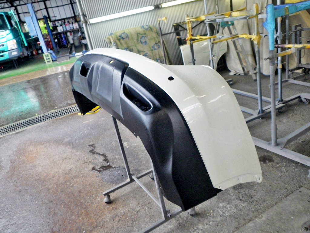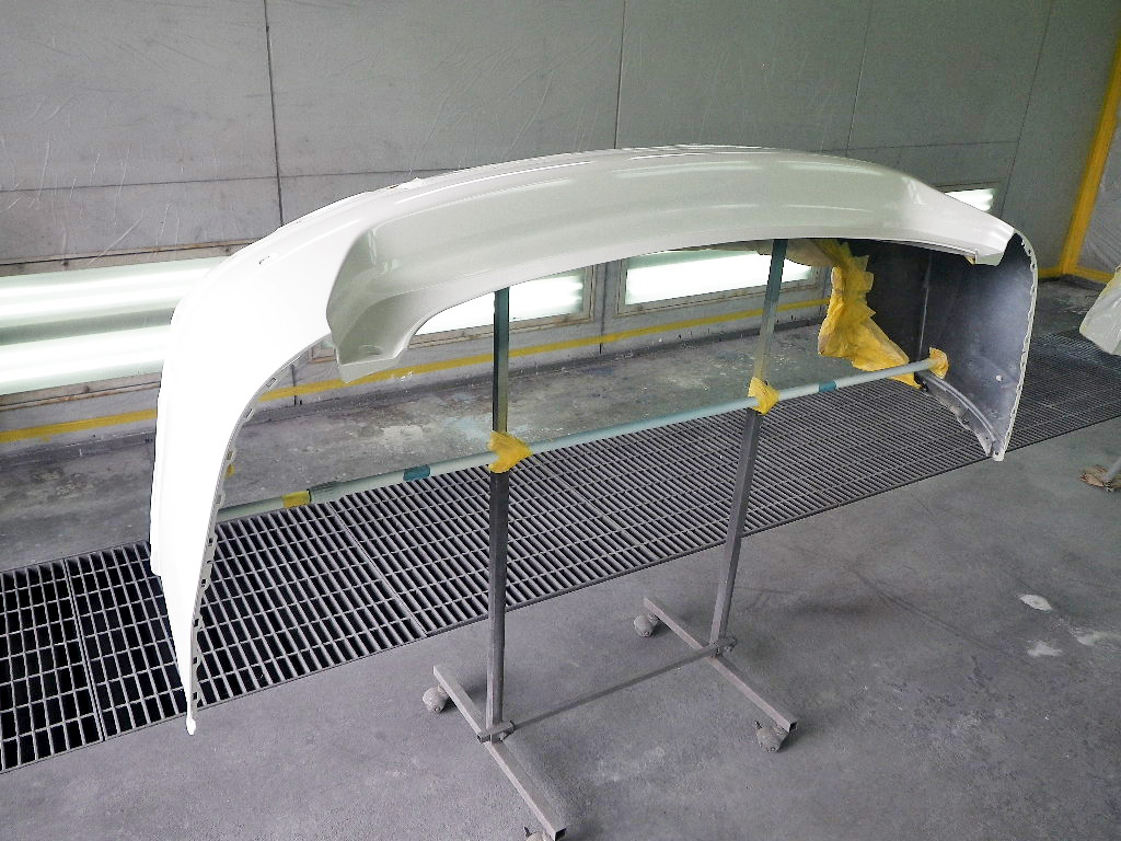 続いて塗装ブースにて塗装をしていきます。塗装まで終わると、今回は車両全体を直しましたのでまるで新車に戻った様に綺麗になってくれるはずです。