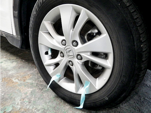 相手があっての事故だったようですが、車両側面及びタイヤ、ホイールにダメージが確認できましたので補修していきます。