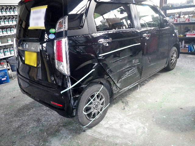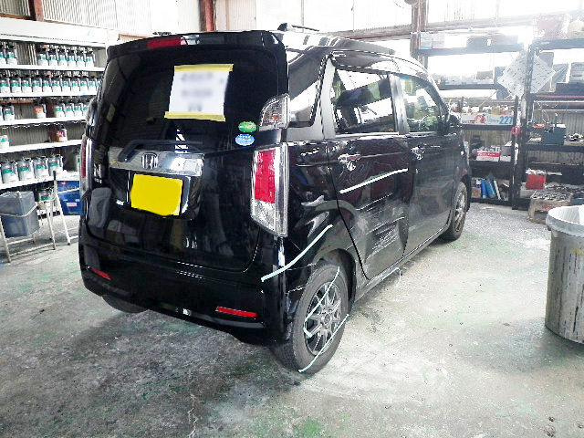 ホンダ Nワゴンの板金・塗装 2025年12月12日 最終更新日時 : 2025年12月12日 suga-jidousya ホンダ Nワゴンの板金・塗装 ホンダ Nワゴンの板金・塗装の様子です。事故による補修となります。車両右側面にダメージを受けておりますのでその補修となります。 右のリアドアを交換して、右のクォーターパネルは修理しています。更にリアバンパーも交換しました。結構な傷を受けていましたが、事故前の綺麗な車両に戻ってくれました。