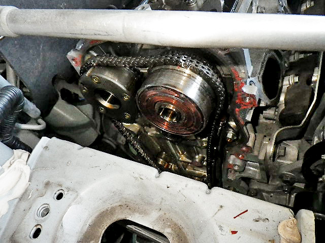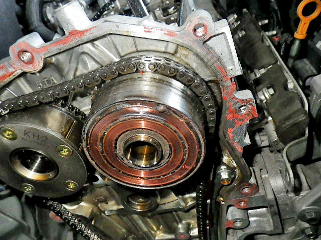 日産 セレナのVVTのアクチュエーターモーター修理の様子です。VVTとは、エンジンの負荷や回転数に応じて、吸気・排気バルブの開閉タイミングを連続的に変化させる技術です。元々はバイクから始まった技術ですが、現在では車両にも適用されています。急激な加速を実現するための技術となります。