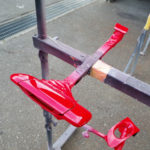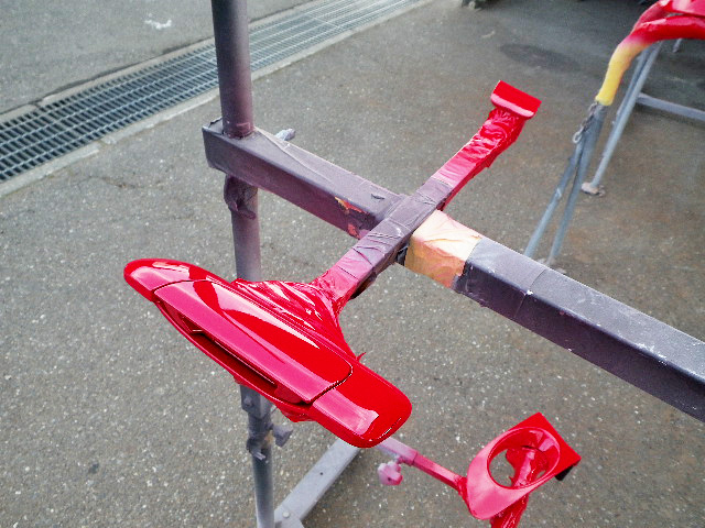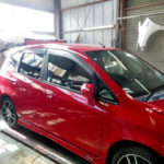 ホンダ フィットの全塗装 2026年2月17日 最終更新日時 : 2026年2月17日 suga-jidousya ホンダ フィットの全塗装 ホンダ フィットのほぼ全塗装のご依頼を頂きました。車両が結構古く、赤の色は色落ちしやすく、今回同色に塗り直して欲しいとの事でした。 全塗装といっても、結構小物関係が多く、意外と手がかかります。まずは下地となる白に塗装していきます。 白が入ったら、今度は赤の塗装になります。ご覧の通り、細かな部品が非常に多く作業はなかなか苦労しています。 全て塗装が済んだら、組み上げていくのですが、現在まだ作業中ですので、完成は後日ご紹介させて頂きます。