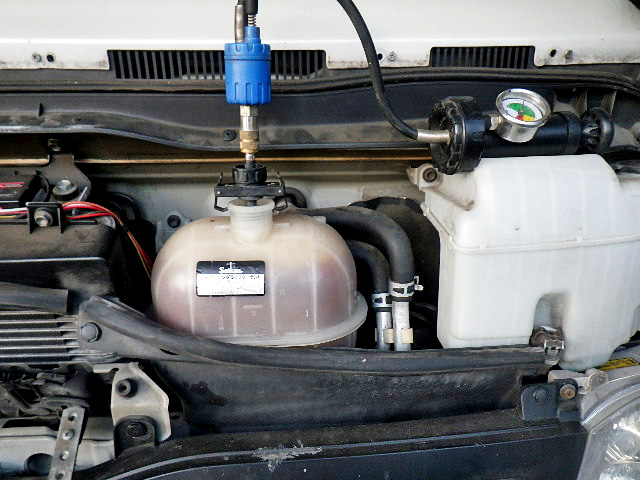 トヨタ ハイエースの冷却水漏れ修理 2026年2月19日 最終更新日時 : 2026年2月19日 suga-jidousya トヨタ ハイエースの冷却水漏れ修理 トヨタ ハイエースの冷却水漏れ修理の様子です。車検でお預かりした際に冷却水がありませんでした。これは漏れているという事ですので、まずは漏れの場所を確認する為に圧をかけて、場所の特定をしていきます。場所が特定できたら補修をして作業は完了です。