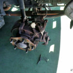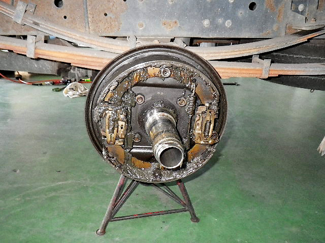 三菱 キャンターの車検・整備 2026年3月10日 最終更新日時 : 2026年3月10日 suga-jidousya 三菱 キャンターの車検・整備 三菱 キャンターの車検・整備の様子です。こちらはブレーキをバラしたところです。オイルがこんなにまわってしまっており、それを綺麗に掃除してあげて組みなおしました。また、フロントのブレーキも減っていましたので、交換致しました。結果前後やったので、費用が結構かかってしまいましたが、お仕事で使われている車両ですので、特に安全に使用するのに影響が大きい部分ですので仕方が無いのかなと。
