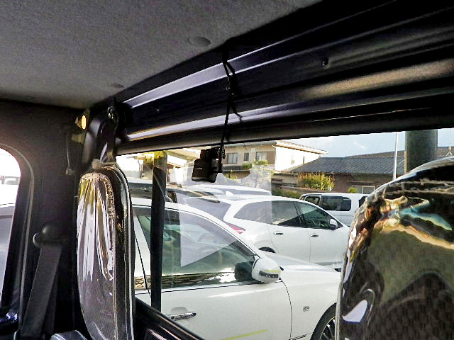 ちなみに、こちらの製品は一見すると普通のルームミラーに見えますが、実際は鏡で映しているのではなく、カメラで撮影した映像を常時表示しております。その為、通常のルームミラーですと、車内やトランク、今回の軽トラの様に荷台に荷物がたくさんあると、視界が遮られてしまい後ろが見づらくなってしまいますが、こちらは、後方につけられたカメラの映像ですので、それらの影響を全く受けません。