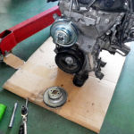 ミッション載せ替えの為には、まずエンジンを降ろしてバラしてからではないとミッションが格納されているところまでアクセスできませんので、かなり大掛かりな作業となってしまいます。無事にミッション載せ替えが済んで作業は完了となりました。